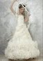 Экстравагантное свадебное платье, украшенное нежной вышивкой. Открытый прямой лиф модели соблазнительно обнажает плечи. Изюминка платья - розы, искусно выполненные из гофрированной ткани и расположенные по нижнему краю роскошной пышной юбки. В наличии 44(38) размер, уточнить информацию можно по телефону 8(495)930-9970.
