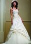 Элегантное свадебное платье с открытой зоной декольте представлено известным брендом Papilio. Корсет с широким поясом украшен расшитыми аппликациями. Юбка А-силуэта дополнена оригинальной сборкой с объёмным цветком из кружева. Наряд расширяется к полу и переходит в кокетливый шлейф. Восхитительный образ для современной невесты.