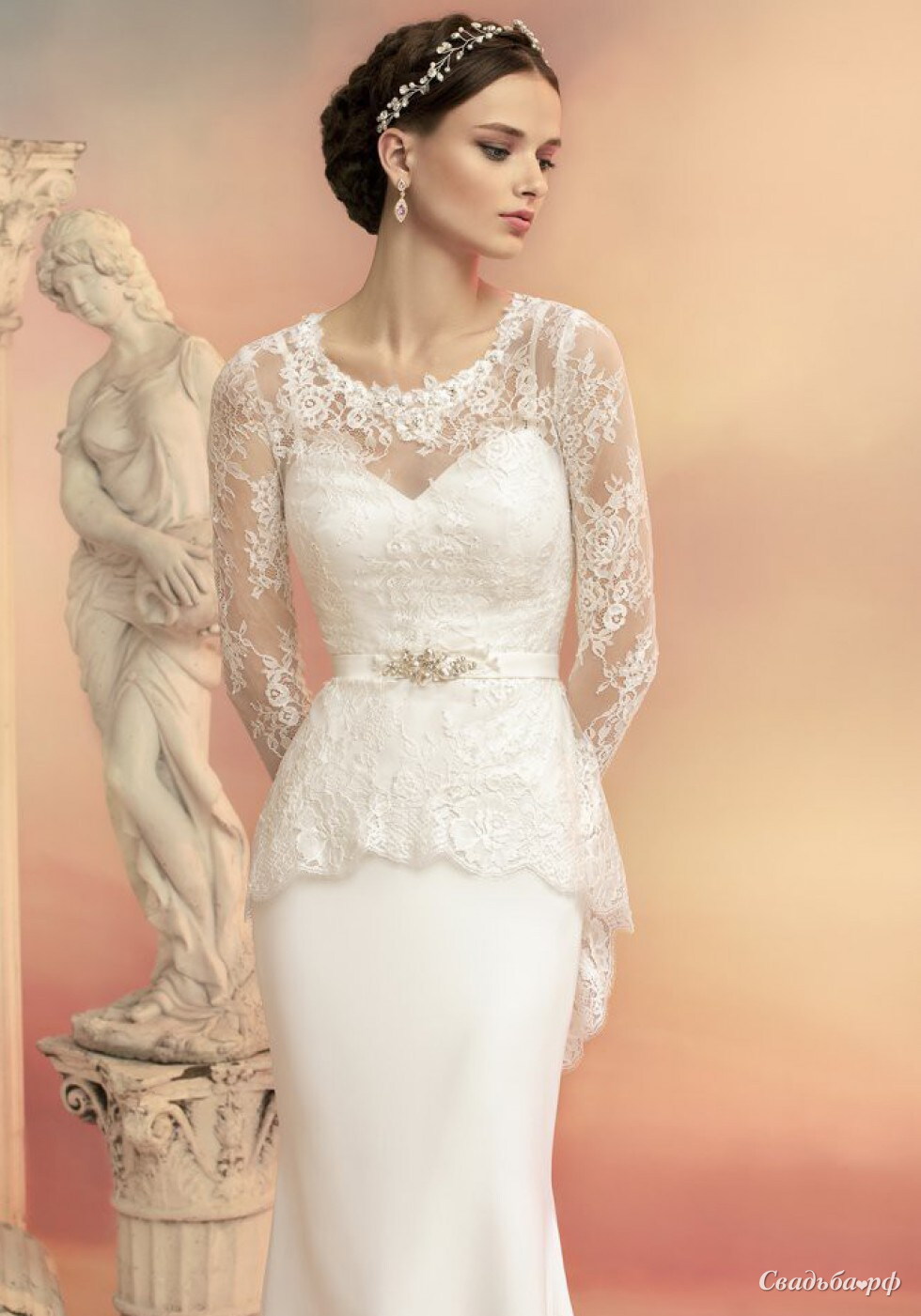 Модель «два в одном». Элегантное струящееся платье, поверх которого надевается роскошная кружевная блуза с декоративно-расшитым поясом.