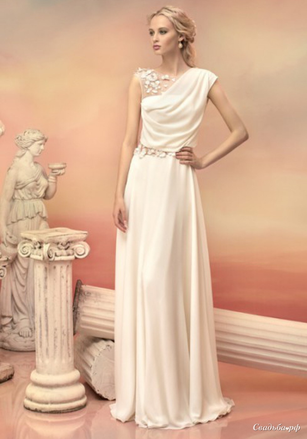 Стильное платье с асимметричным дизайнерским декором в виде россыпи цветов на плече, выполнено из шифона.