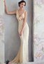 Силуэтное платье с небольшим шлейфом, украшенное кружевными расшитыми вставками.