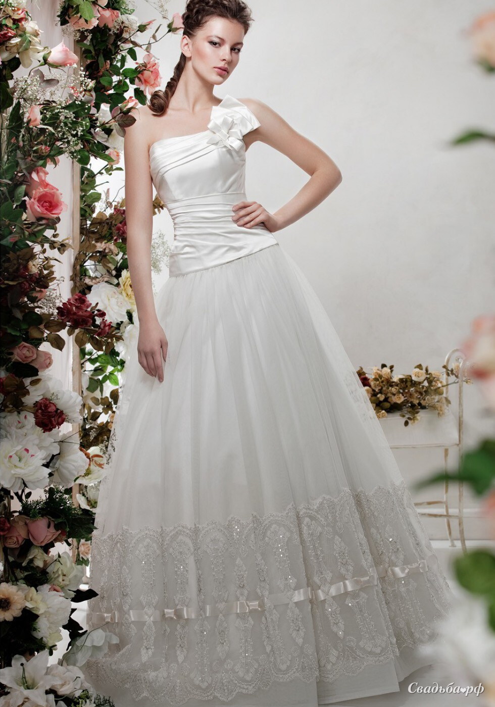 Свадебный наряд, состоящий из атласного корсета и фатиновой юбки. В наличии 40(34) размера, кремового цвета; 42(36) размера, белого цвета.