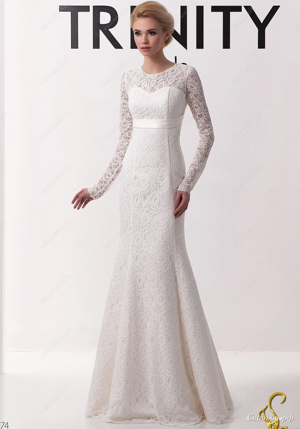 Стильное свадебное платье с длинными рукавами, выполнено из кружева. В наличии 46 размера, уточнить информацию вы можете по телефону 8(495)930-99-70.