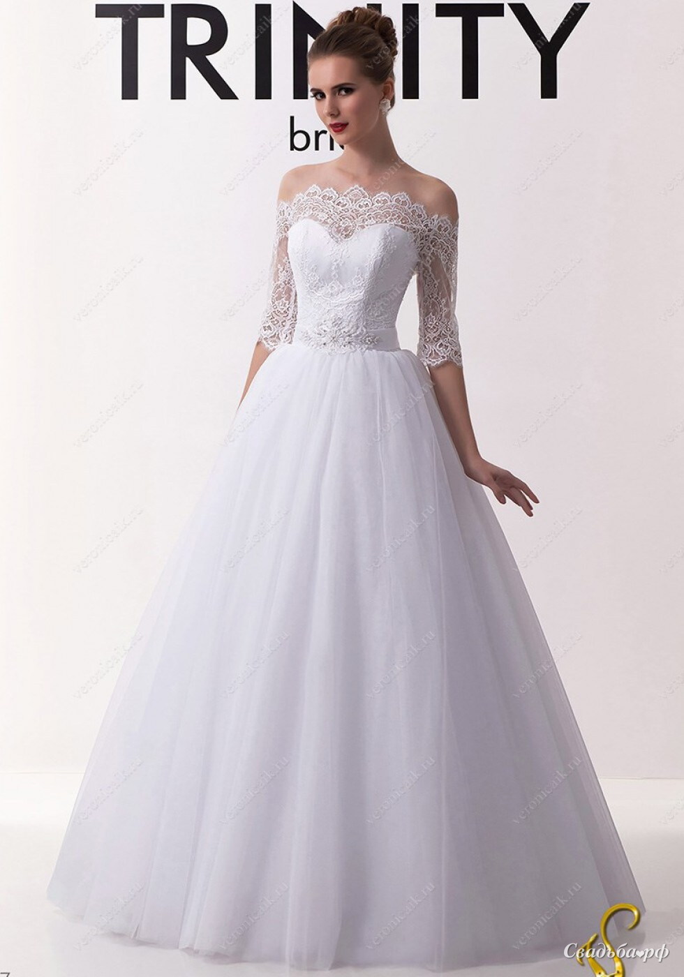 Пышное свадебное платье с кружевным лифом и рукавчиками, кокетливо приоткрывающими плечики, талия подчеркнута вышитым поясом. В наличии 42 размера, уточнить информацию можно по телефону 8(495)930-99-70.