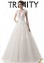 Свадебное платье с кружевным лифом и пышной фатиновой юбкой, украшенной кружевными вставками. В наличии данная модель с длинными рукавами, 42 размера.