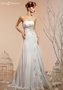 Изящное и утонченное свадебное платье. Корсет с открытыми плечами украшен драпировкой и вышивкой из блестящих страз. Юбка этого платья состоит из двух частей: первая (верхняя) часть, выполненная из той же ткани, что и корсет. Оригинальная юбка, украшенная легкой драпировкой, мягко ниспадает до самого пола.