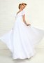 Невероятно лёгкое свадебное платье просто создано для жизнерадостных и игривых невест. Глубокое декольте в сочетании с короткими рукавами-крылышками привлекает внимание к бюсту. Широкий пояс подчёркивает талию. Длинная юбка струится до самого пола. Мы также предлагаем подбор фаты, перчаток, диадем, бижутерии к данной модели.