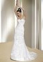 Элегантное свадебное платье с изящным драпированным лифом идеально садится по фигуре и подчёркивает женственность Вашего силуэта. Юбка облегает бёдра и постепенно расширяется к полу. Подол наряда украшен оригинальными цветами из ткани. Кокетливый шлейф гармонично дополняет образ. Открытая спинка приковывает к себе взгляды.