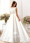Классическое пышное платье, ткань - сатиновый атлас, отделка корсета - кружево. Пояс из атласа, вышитый бисером и кристаллами Swarovski. Есть карманы. Глубокий V-образный вырез на спине. По всей длине юбки пуговицы.