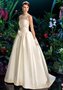 Свадебное платье классического А-силуэта, выполненное из шелка микадо, создано для изысканного и утонченного образа. Корсет украшен кружевом и нежной расшивкой. Талию подчеркивает широкий драпированный пояс, юбка с мягкими складками изящно переходит в шлейф.