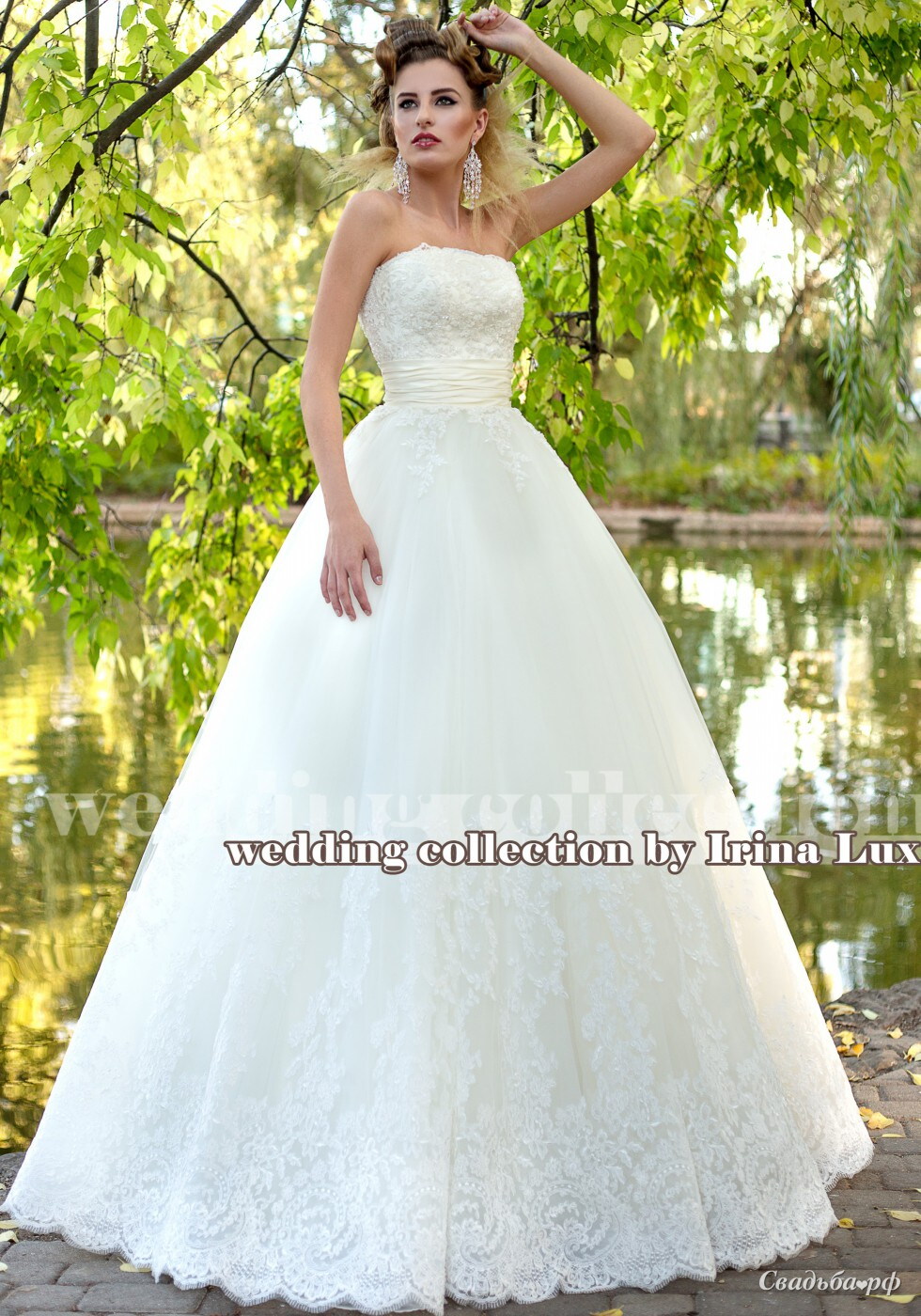 Роскошное платье для очень требовательной особы!!! Великолепное кружево украшает все платье. На талии широкий пояс из драпированного шелка. Кружево украшает корсет и широким купоном ложится по всему подолу платья. Очень красиво и торжественно!!!