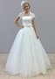 Пышное свадебное платье с атласным поясом. Кружевное болеро дополняет модель, платье подходит для венчания.
