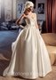 Классическое свадебное платье из атласа микадо. Юбка заложена в мягкие складки, декольте сердечком, на талии поясок с пряжкой. Корсет украшен кружевом и жемчугом.