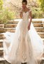 Свадебное платье-трансформер. Силуэтное платье со съемной юбкой из фатина, украшено кружевными аппликациями. Платье участвует во всех акциях!