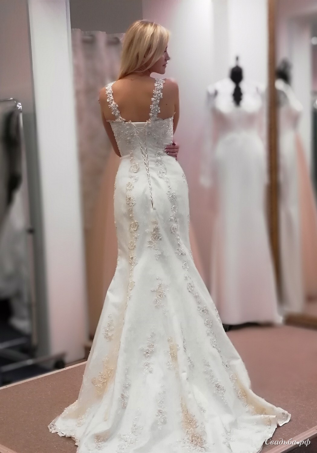 Роскошное свадебное платье в стиле Русалка, расшито бисером, небольшой шлейф.