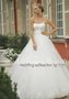Классическое свадебное платье с пышной юбкой, украшенной аппликациями из кружевных цветов. Корсет "сердечко" украшен драпировкой из фатина и атласными бантиками.