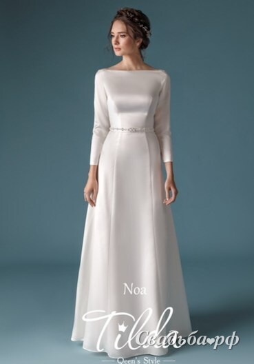 Лаконичное платье А-силуэта из мягкого атласа с рукавами.