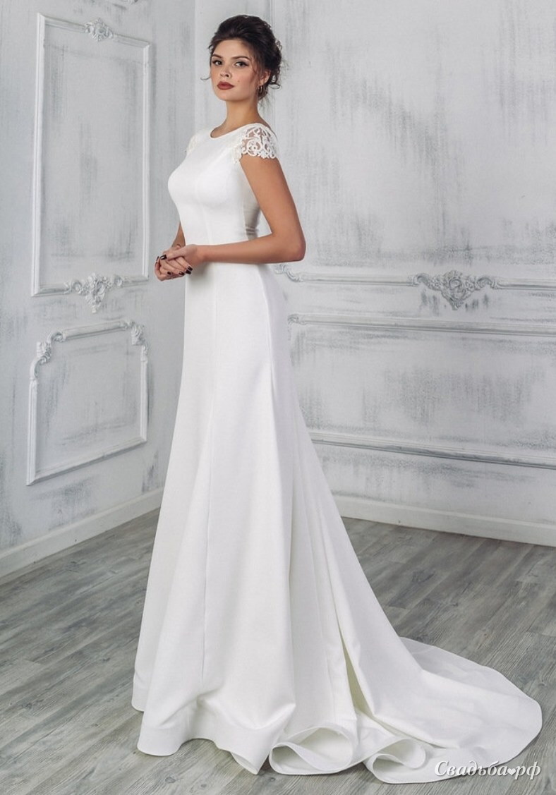 Шикарное силуэтное платье русалка. Очень классно подчеркивает фигуру, благодаря мягкой ткани. Изюминкой модели является кружевной орнамент на спинке, который завершается пуговичками. Удлиняет силуэт, конечно, шлейф. Суперкрасиво!