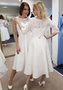 Кружевное свадебное платье длины миди. Модель исполнена в двух вариантах: с рукавами и без. Модель очень хороша для камерной свадьбы, регистрации свадьбы, венчания и как второе платье невесты!