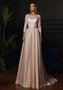 Классическое свадебное платье А силуэта с роскошной атласной юбкой и кружевным верхом.