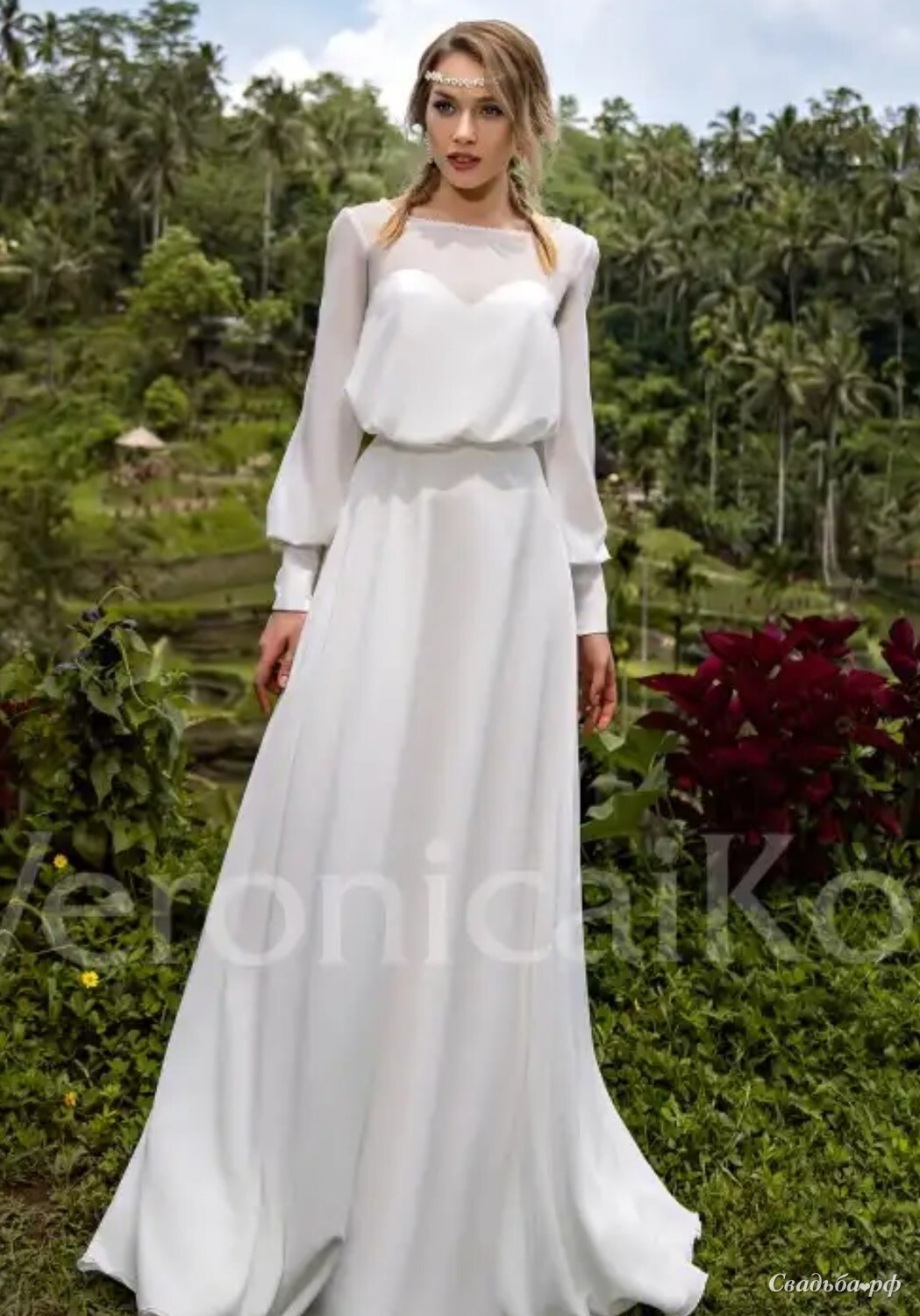 Утонченное лаконичное платье с рукавом. Подойдёт для росписи, для узкого семейного торжества.