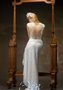 Элегантное свадебное платье с прозрачной вставкой на спине поможет создать образ роскошной женщины-вамп. Струящийся наряд эффектно подчёркивает женственный силуэт и зрительно вытягивает фигуру. Тончайший узор с вышивкой ручной работы покрывает платье по всей длине. Пояс из лёгкой ткани завязан на бёдрах. Юбка прямого покроя струится до пола.