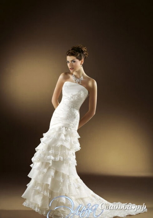 Романтичное свадебное платье от лучших итальянских дизайнеров идеально сядет по Вашей фигурке. Заниженный корсет с пикантной зоной декольте украшен ажурными вставками. От линии бёдер начинается многоярусная юбочка прямого силуэта. Шлейф дополняет образ. В салоне представлен большой выбор свадебной обуви и свадебных аксессуаров.