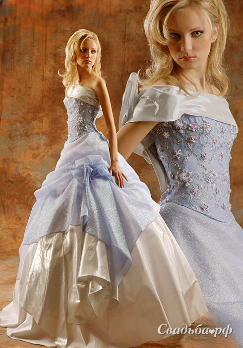 Свадебное платье с приспущенными плечиками и скромной зоной декольте поможет создать эффектный образ стильной невесты. Широкая полоса по верхнему краю корсета сзади переходит в бант. Пышная юбка с объёмными сборками драпировки гармонично сочетается с расшитым корсетом. В салоне представлен большой выбор свадебных аксессуаров и свадебной обуви.