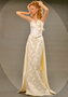 Элегантный свадебный наряд с оригинальным шлейфом зрительно вытягивает силуэт и отлично сидит по фигуре. Корсет с необычным верхним краем дополнен лентами и цветком на талии. Длинная юбка прямого покроя украшена ажурными вставками. Платье смотрится стильно и современно. В салоне представлен большой выбор свадебных аксессуаров и свадебной обуви.