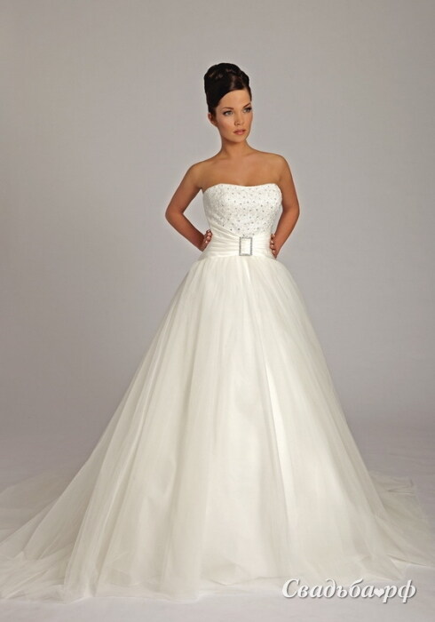 Свадебное платье от итальянского бренда Lisa Donetti поможет Вам создать неземной образ. Изящный корсет с открытой зоной декольте и сверкающей вышивкой идеально садится по фигуре. Талия подчёркнута драпировкой и оригинальной пряжкой. Пышная юбка из невесомой ткани дополнена роскошным шлейфом. Стильно и элегантно.