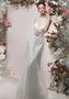 Нежное платье с закрытым верхом и не пышной струящейся юбкой.