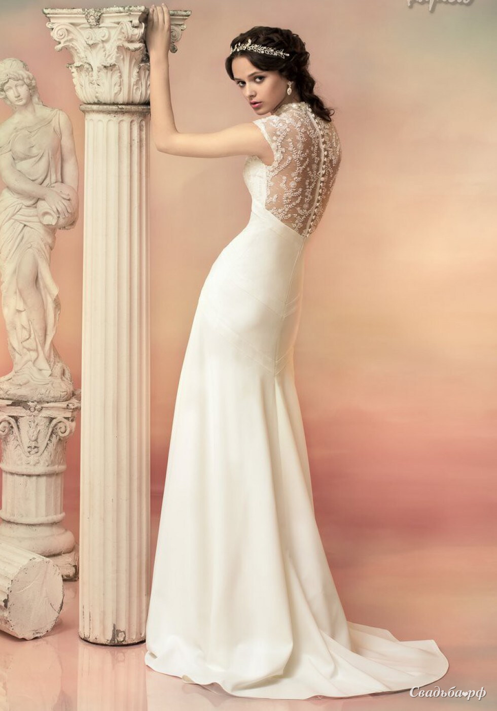 Элегантное, полуприлегающее платье из роскошного вышитого бисером и пайетками кружева на лифе и струящейся юбкой.