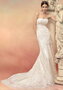 Полуприлегающее кружевное платье с роскошной юбкой и декольтированным лифом. Кружевное полотно расшито мелкими пайетками и оригинальным узором.