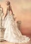 Необыкновенно роскошное платье, выполненное в виде декольтированного, задрапированного корсета с объемной юбкой, насыщенной настрочными воланами из органзы, переходящими в шлейф. Корсет обогащён декоративной вышитой каймой.
