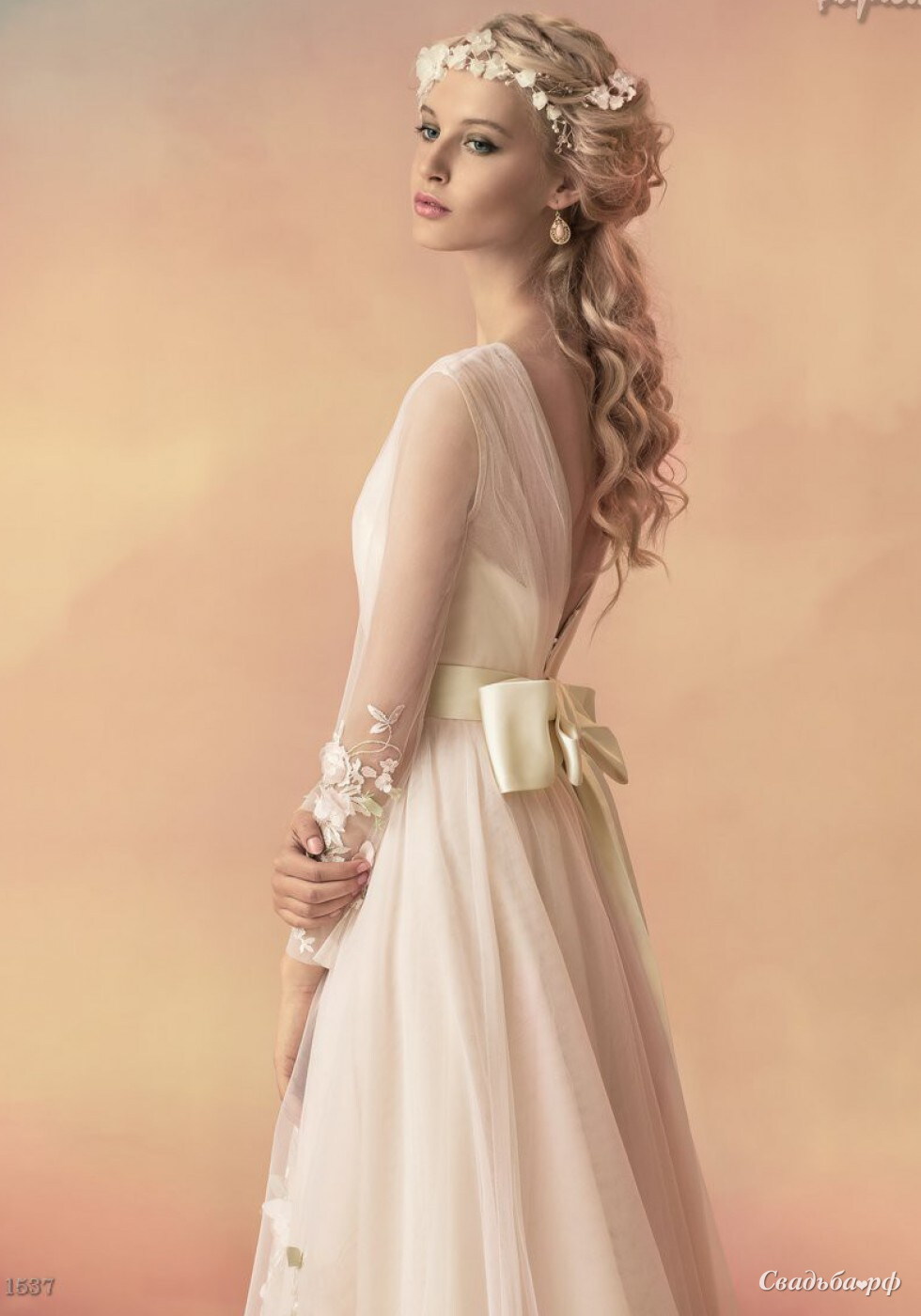 Изящное, воздушное платье с цветочными вышитыми мотивами в нежной розовой гамме.