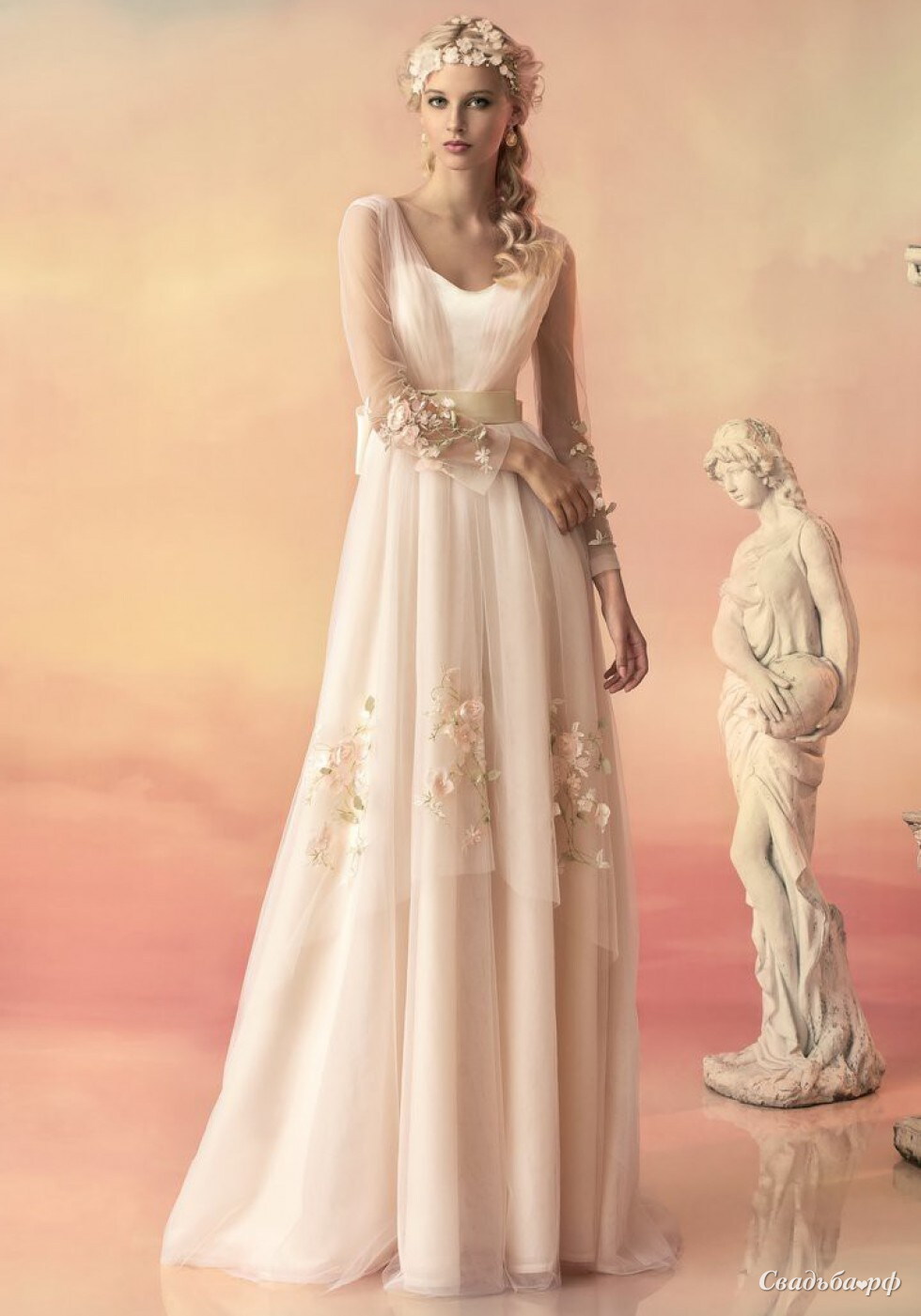 Изящное, воздушное платье с цветочными вышитыми мотивами в нежной розовой гамме.