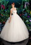 Свадебное платье с пышной юбкой из фатина с закрытым верхом из тонкой сетки.