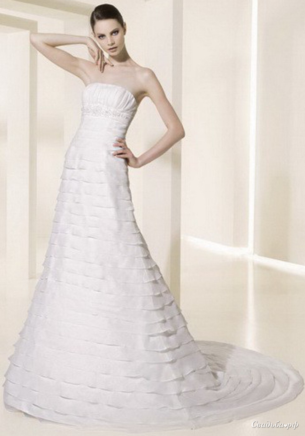 Платье А-силуэта. Модель полностью состоит из воланов.