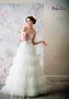 Роскошное свадебное платье с миниатюрным корсетом и открытой зоной декольте поможет создать романтичный образ прекрасной невесты. Талия подчёркнута поясом с кокетливым бантиком. Пышная юбка оригинальной фактуры расширяется к полу. Этот свадебный наряд поражает своей воздушностью и оригинальным кроем.