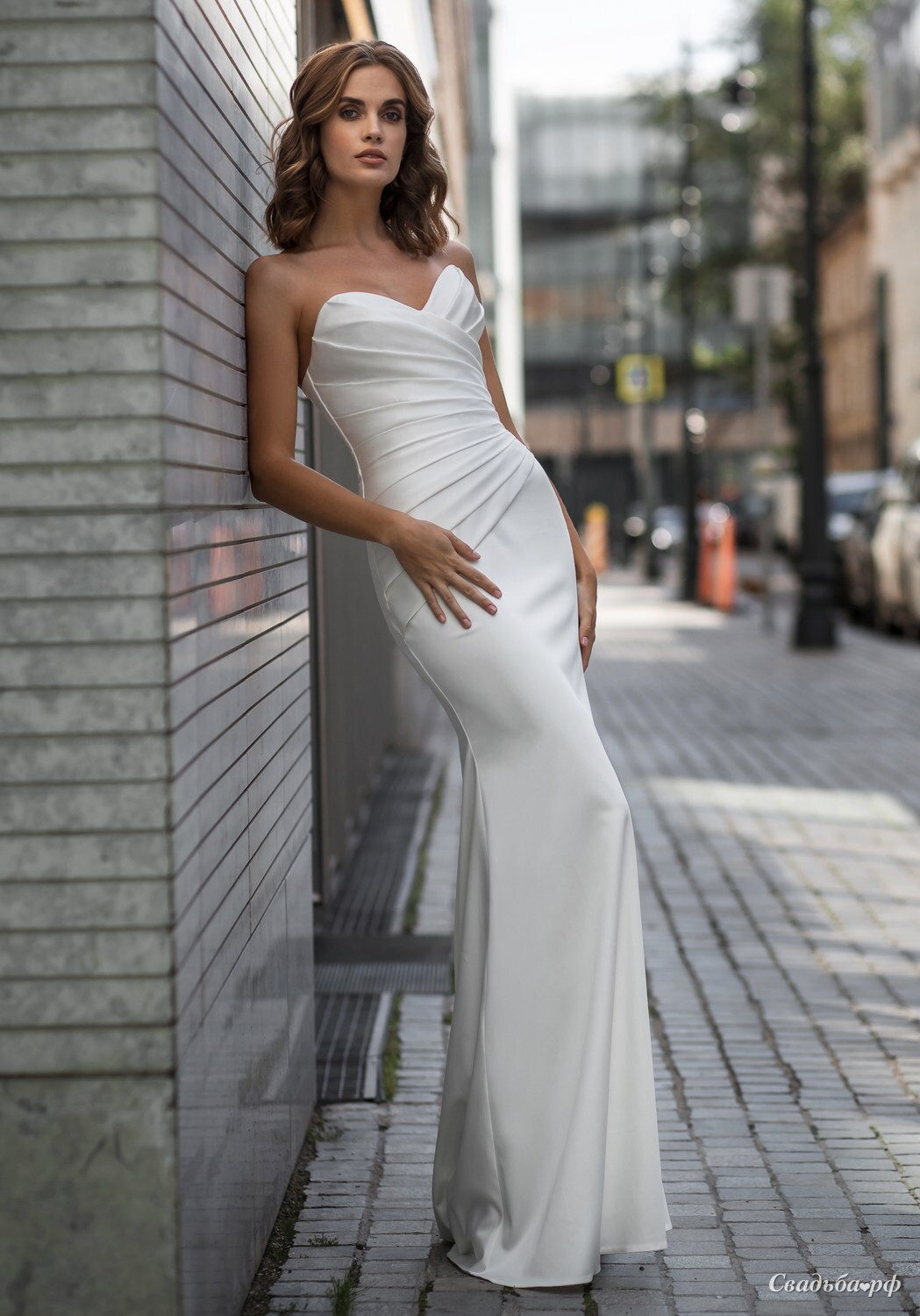 Роскошное свадебное платье, достойное самой красивой невесты! Аккуратная линия декольте, облегающий силуэт «рыбки» и продуманные линии кроя максимально подчеркивают стройную фигуру. Лаконичное, но не выглядит просто благодаря драпировке. Это платье не будет сковывать движения и позволит Вам свободно двигаться и танцевать, ведь оно выполнено из стрейчевого атласа – новинки этого сезона. Свадебное платье рыбка подчеркнёт грациозность и женственность, будьте уверены, в нем Вы не останетесь без тысячи комплиментов в самый счастливый день!