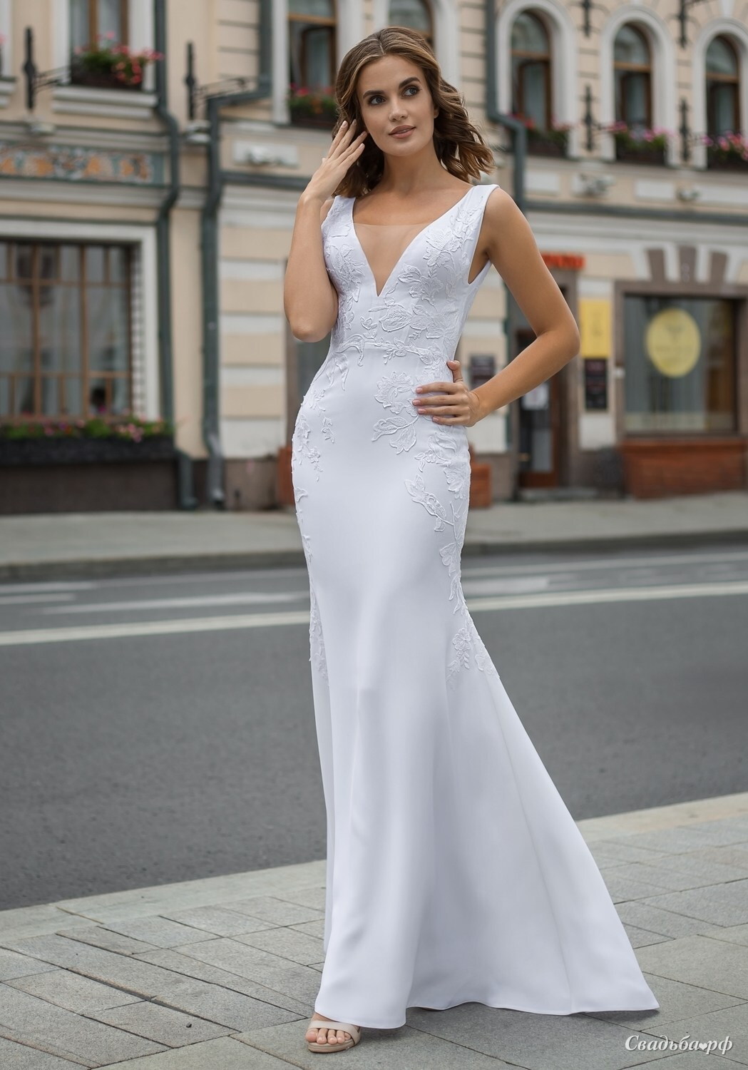 Свадебное платье Olga Sposa 1918 — это роскошный и элегантный выбор для вашего Дня. Созданное из премиального крепа, это платье-русалка обнимает вашу фигуру и подчеркивает изгибы. Глубокий вырез и белоснежное матовое кружево придают изысканность этому вневременному образу. Благодаря классическому и в то же время сексуальному силуэту, вы непременно привлечете внимание окружающих в свой знаменательный день. Если вы ищете традиционный или современный свадебный образ, свадебное платье Olga Sposa 1918 — идеальный выбор для вас.
