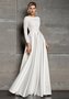 Это лаконичное и женственное свадебное платье - идеальный вариант для регистрации в ЗАГСе, церковного венчания и праздничных торжеств. А-силуэт, длинные рукава, классический крой и ряд пуговичек по спинке гармонично дополняют вид платья, придавая образу изящество и интересность.