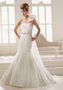 Отличительной особенностью этого свадебного платья является необычной формы петелька через плечо в виде пышного, белоснежного цветка. Лиф платья декорирован легким кружевом. Талию подчеркивает элегантный поясок. Будет смотреться отлично на высокой стройной девушке, с формами. Добавьте к своему образу колье и сумочку.