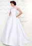Если Вы мечтаете о стильном свадебном наряде, то эта модель из новой коллекции 2014 года создана специально для Вас! Зона декольте и плечики прикрыты нежным кружевом. Корсет также может похвастаться полупрозрачной драпировкой. Талия подчёркнута широким поясом. Пышная юбка с широкими складками и шлейфом смотрится по-королевски.