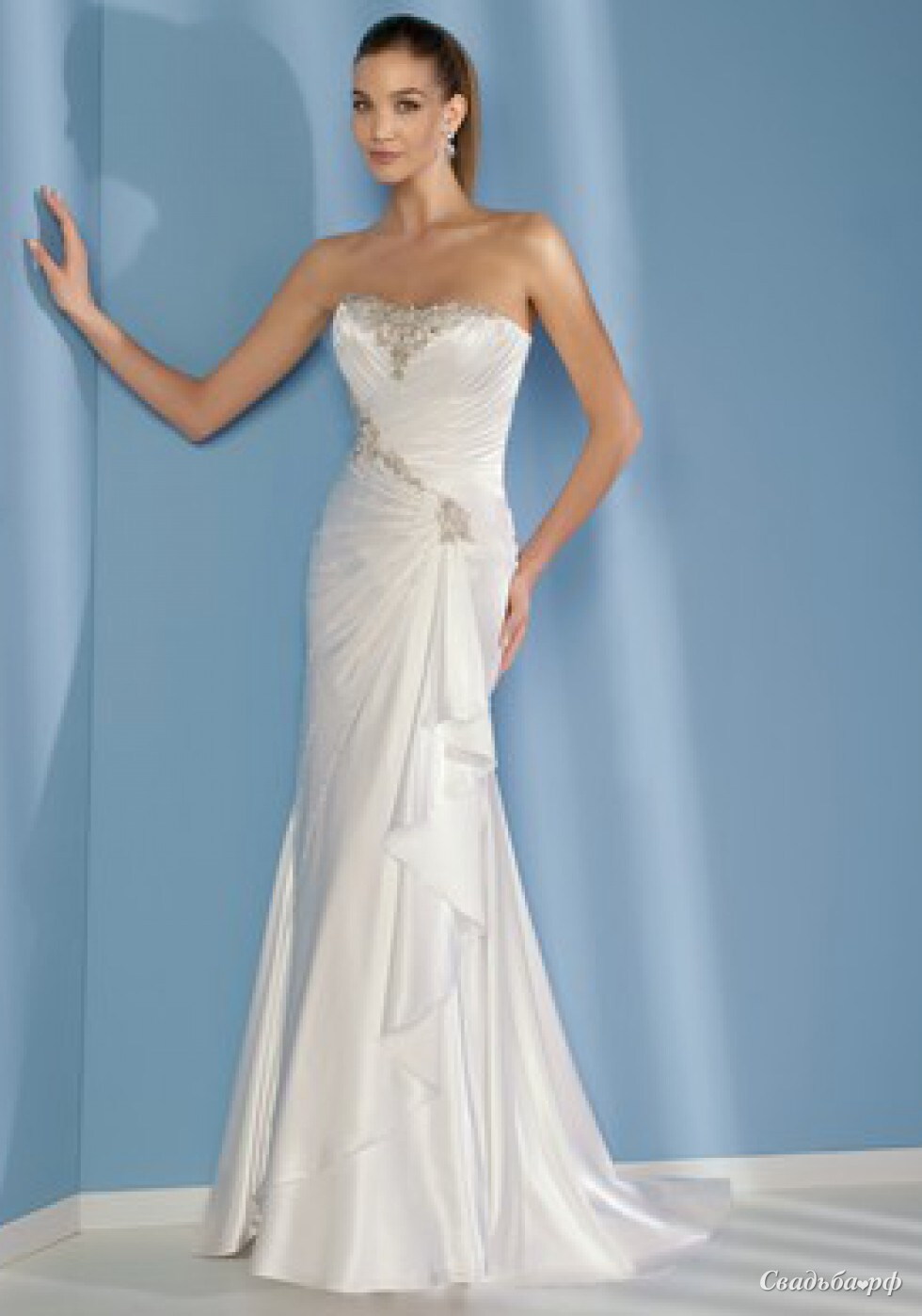 Красивое платье из тонкого атласа. Лиф расшит камнями. Все это в сочетании создает роскошный образ.
