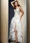 Оригинальное свадебное платье с открытой зоной декольте и соблазнительным вырезом юбки создано для самых стильных и дерзких невест. Заниженный корсет декорирован тончайшей вышивкой ручной работы. Модель зрительно увеличивает грудь и выгодно подчёркивает талию. Многоуровневая юбочка с множеством воланов выполнена из нежной ткани.