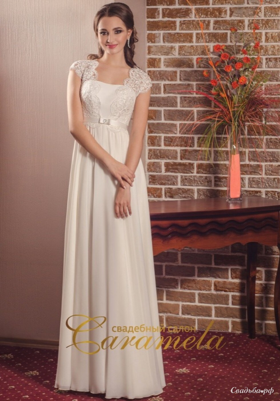 Свадебное платье в стиле ампир с закрытой спинкой.