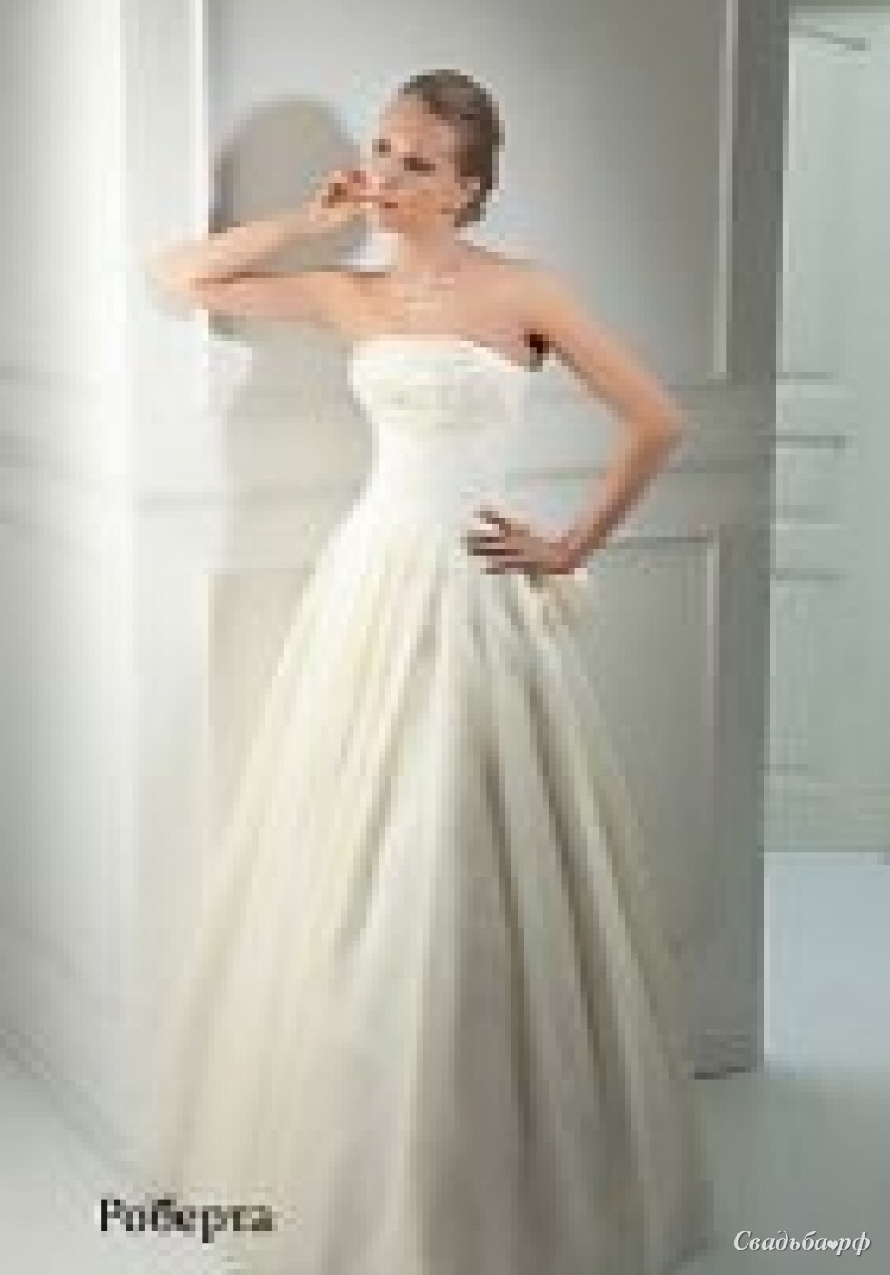 Очень нежное атласное платье,расшивка в районе груди придает платью торжественность,бант снимется,по желанию спинку возможно закрыть.