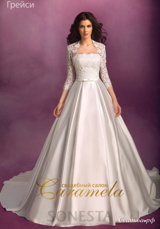 Свадебное платье с болеро, красивое сочетание атласной юбки и кружевного корсета.Возможно приобрести без болеро.