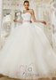 Белоснежное свадебное платье с открытой зоной декольте и заниженным корсетом никого не оставит равнодушным. Этот поистине королевский наряд выгодно подчёркивает талию и зрительно увеличивает бюст. Широкий пояс контрастного цвета придаёт модели особый шарм. Пышная юбка из невесомого фатина поможет создать нежный образ современной невесты.